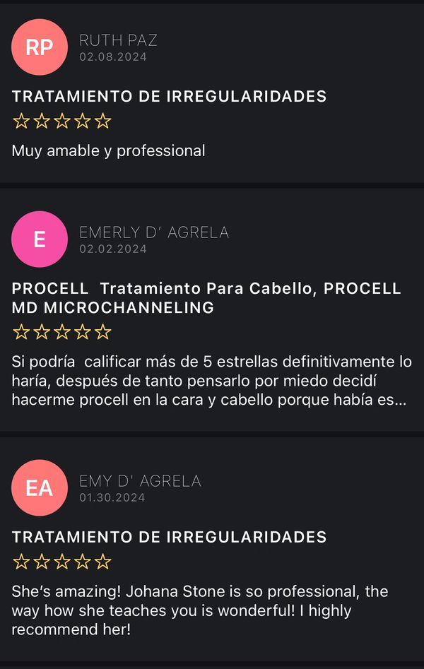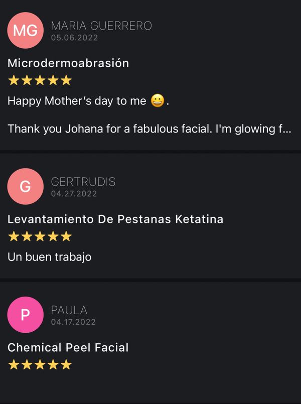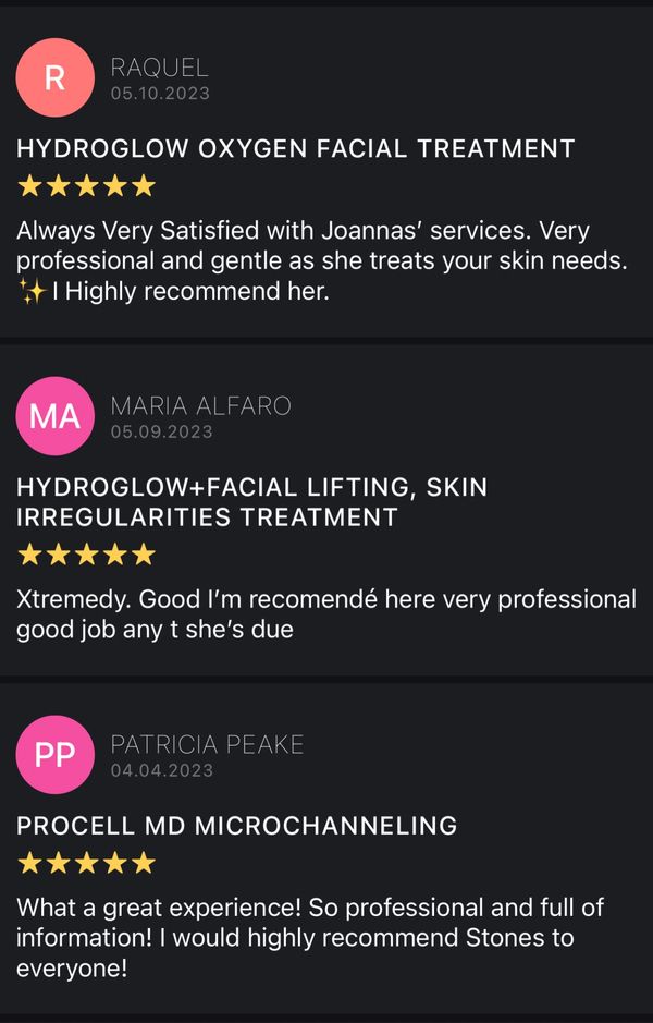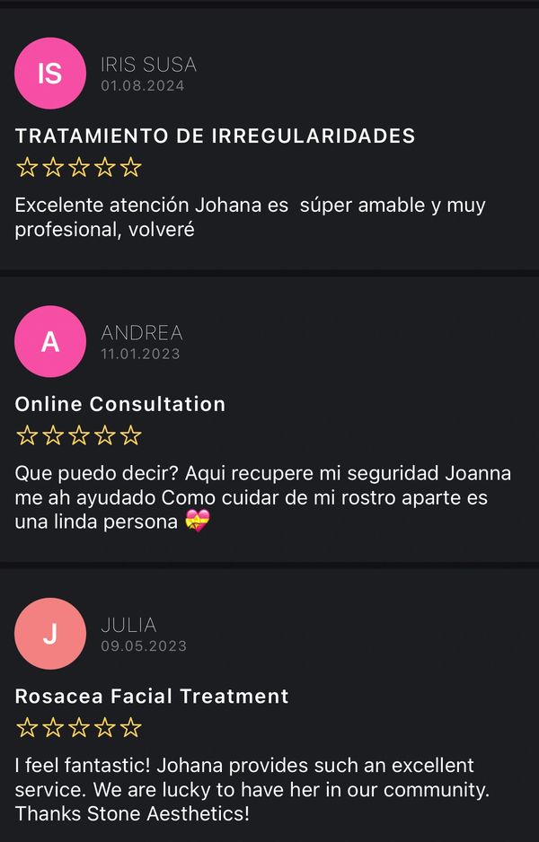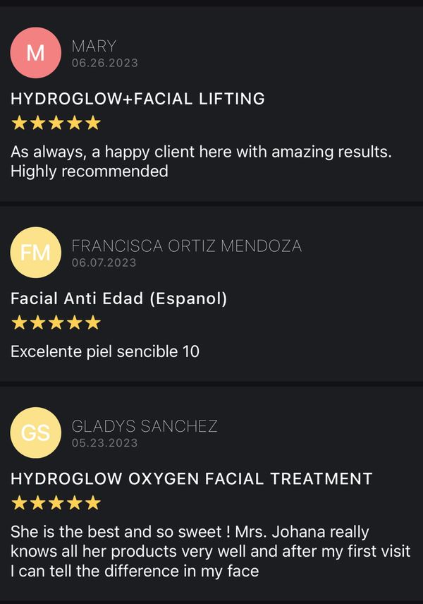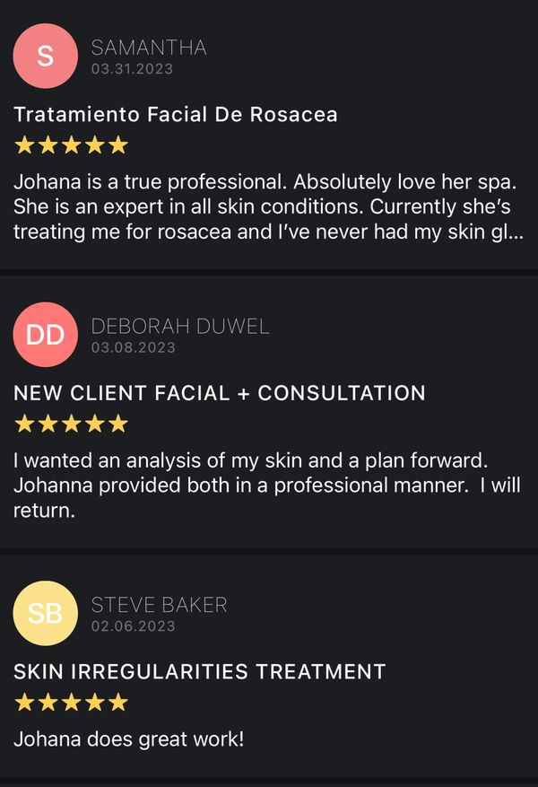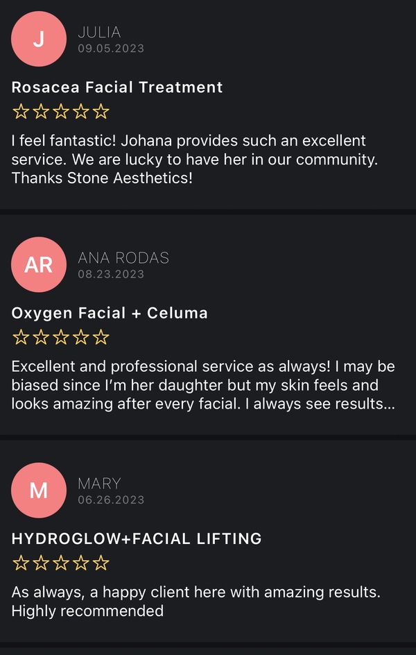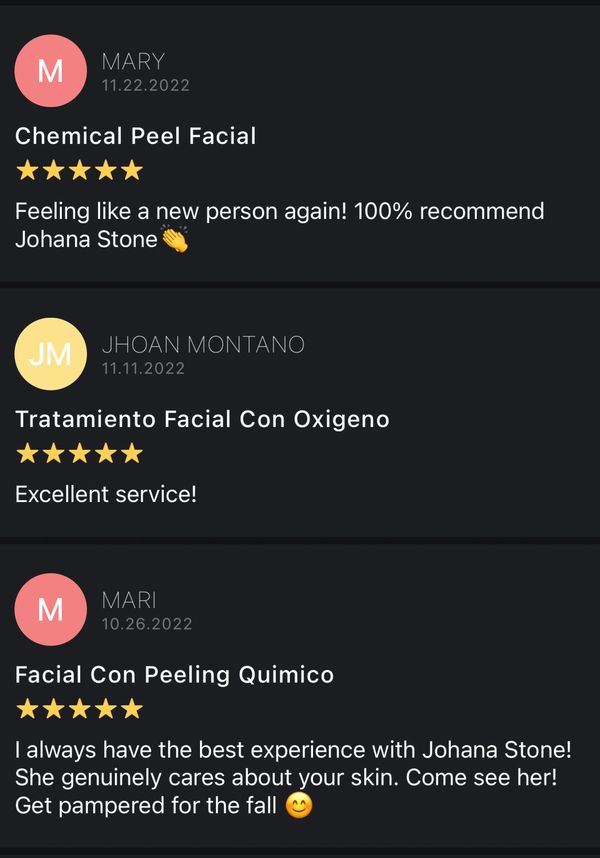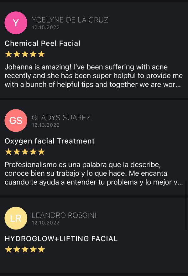 Hello, Im Johana Stone. I"m originally from Ecuador and I moved to the United States 10 years ago. I followed my dream and love for the esthetics, I graduated from SEES Southeastern Esthetics Institute in Columbia South Carolina as a Licensed Esthetician and got certified myself in Eyelash Extensions. Post graduated I also obtained the certifications on SKIN CLASSIC, PROCELL Microchanneling therapies, Botanical skin care, BB Glow, Hyaluron Pen, Microcurrent, and ChicBD infusion treatment, advance chemical peels, acne skin care specialist, Glymed Plus certified. Additionally I treat aging, rosacea, eczema, psoriasis, melasma and any type of hyperpigmentation.